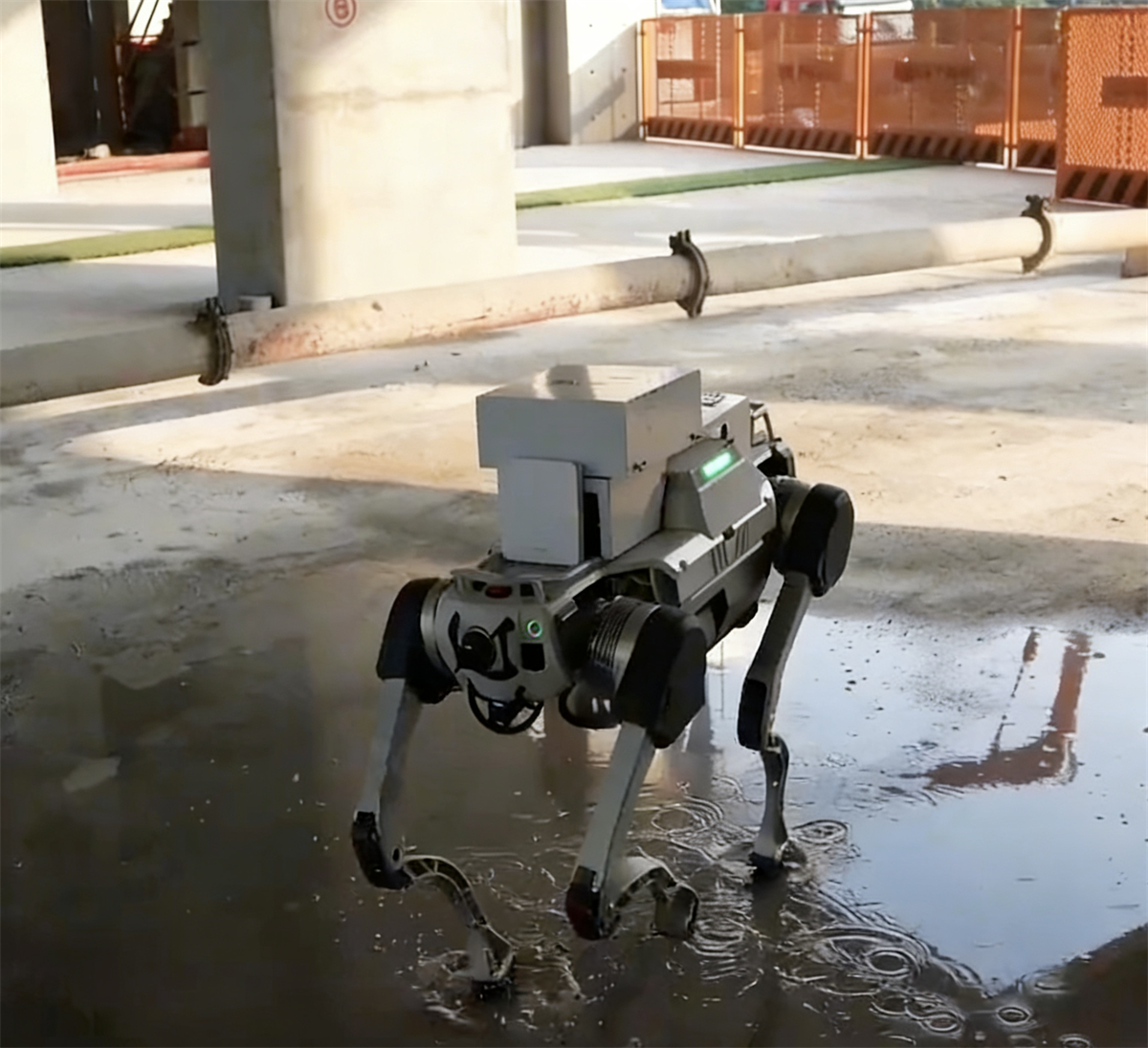依托加强练习算法驱动的智能导航体系,云深处机械狗正在兴办辘集区域露出出优越的自助导航与动态避障技能。绝影X30四足机械人具备IP67工业级防护品级,让它无惧雨雪灰尘等阴毒境况。通过这种“危急区域,机械先行”的无人化先遣观察形式,不只消浸施工职员的安好危机,也淘汰了安好处理盲区,管理了人工巡检”难提效“的题目,为后续现场施工供应前置安好保险。